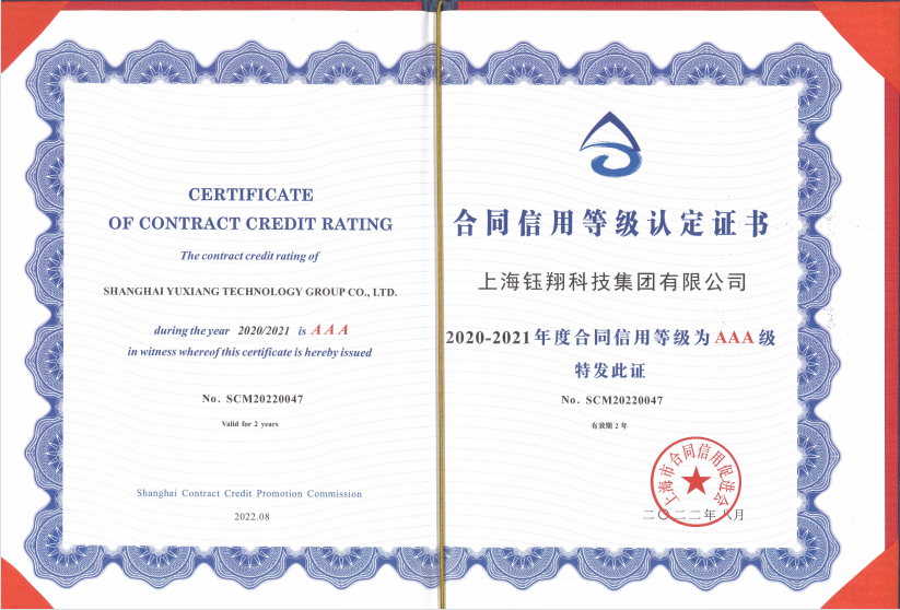鈺翔環(huán)保供應(yīng)鏈上海市AAA級守合同重信用企業(yè)