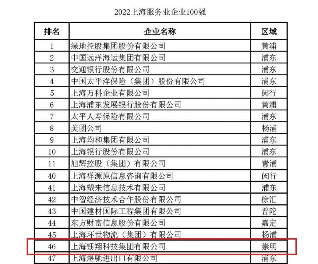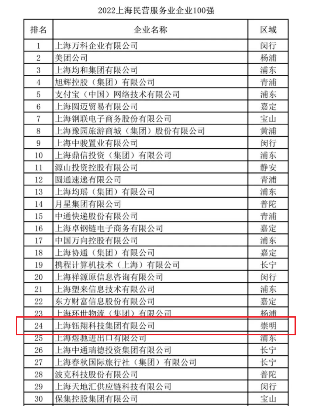 上海鈺翔科技集團(tuán)有限公司憑借卓越的綜合實(shí)力、持續(xù)提升的科技創(chuàng)新能力,2021年實(shí)現(xiàn)營業(yè)收入119.5億元,榮獲“2022上海企業(yè)100強(qiáng)第88名”、“2022上海民營企業(yè)100強(qiáng)第40名”、“2022上海服務(wù)業(yè)企業(yè)100強(qiáng)第46名”、“2022上海民營服務(wù)業(yè)企業(yè)100強(qiáng)第24名”四項(xiàng)榮譽(yù)。