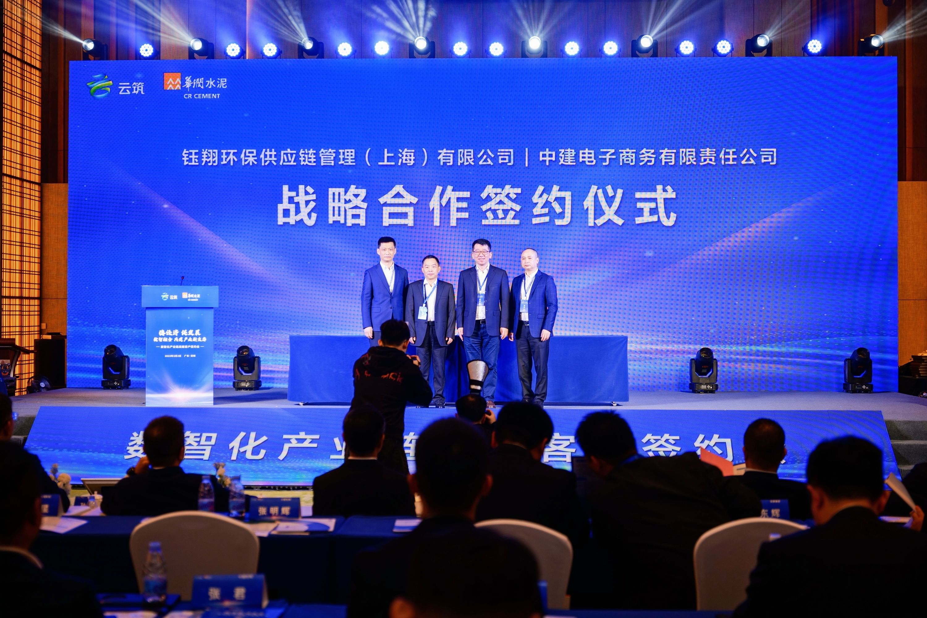 3月2日,鈺翔科技集團旗下全資子公司鈺翔環保供應鏈管理有限公司與云筑(中建電商)在深圳簽署戰略合作協議。本次簽約會上,云筑與鈺翔環保供應鏈管理(上海)有限公司、華潤水泥投資有限公司、普洛斯產融科技有限公司分別簽署戰略合作協議。